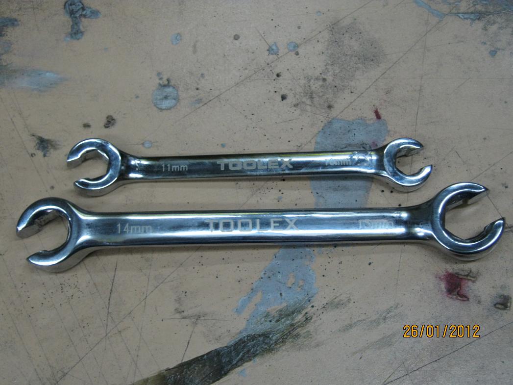 Forgot to mention I bought some spanners especialy for brake lines from Gasweld on the way home yesterday.Am SOOOOO glad I did cause they fit the fittings perfect. No crushed nuts for me this time. They were only about $15ea.